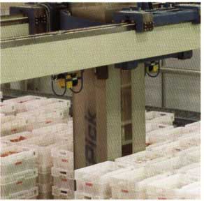 ”机器人是为综合缓冲库以及箱子抓取所提供的方案,这种方案是针对配送用的箱子所设计的,这些箱子装有包装好的物品并可循环使用,包括塑料箱、篮子、小箱子、托盘、搬运箱和容器。